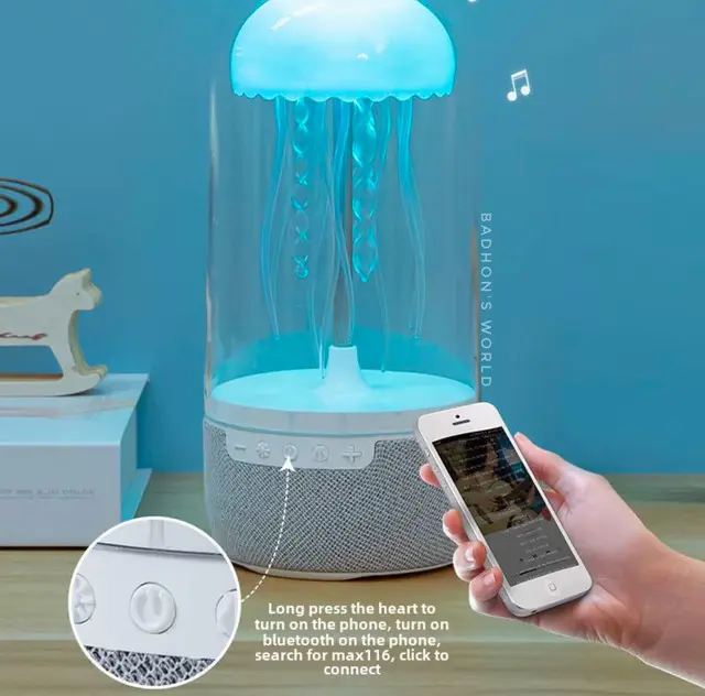 Note:The jellyfish speaker is composed of several gears that rotate simultaneously inside, so it is normal for there to be a slight rotational sound.