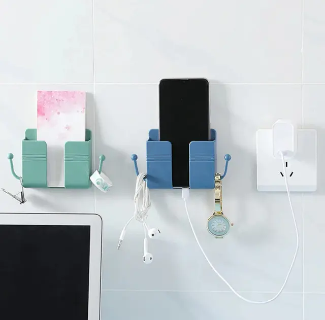 - 1pcs Wall Mounted Organizer Storage Box Remote Control Mounted Mobile Phone Plug Wall Holder