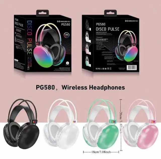 PG580 BT Wireless RGB Light Gaming Luminous Headset Disco Pulse Blue tooth Headset with TF FM