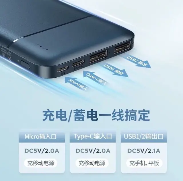 - 6300mAhMicro Input: 5V=2.0AType-C Input: 5V=2.0AUSB Output: